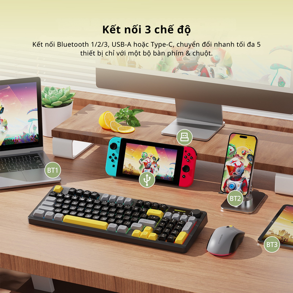 Việc chuyển đổi giữa các thiết bị diễn ra nhanh gọn chỉ với một nút bấm, đủ để giữ mạch công việc liền mạch, không bị ngắt quãng. Dù sử dụng kết nối 2.4GHz, Bluetooth hay cáp Type-C, cảm giác phản hồi vẫn ổn định và mượt mà trong suốt quá trình làm việc.