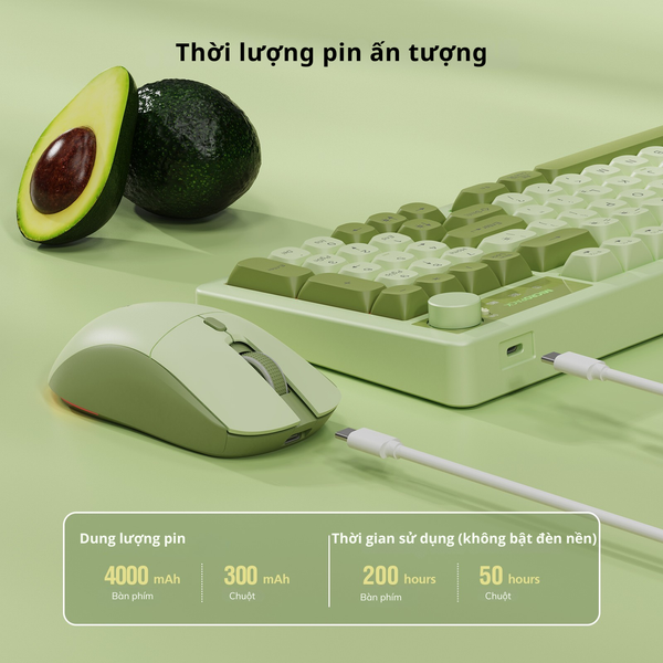Khi sạc đầy và tắt đèn nền, bàn phím có thể sử dụng trong thời gian dài, đủ cho nhiều ngày làm việc liên tục, còn chuột vẫn duy trì sự ổn định suốt cả ngày mà không cần sạc lại giữa chừng. Trải nghiệm liền mạch này đặc biệt phù hợp với những ai thường xuyên làm việc dài giờ hoặc di chuyển nhiều.