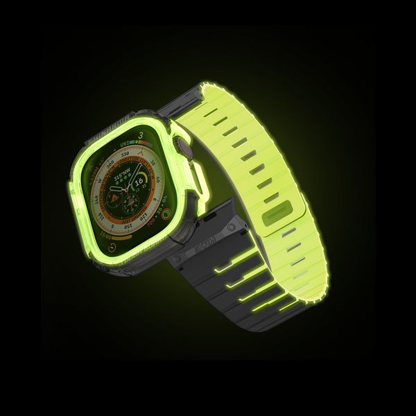 Ngoài các phiên bản màu tiêu chuẩn, GEMINI x ATOM còn có bản phát sáng trong bóng tối, giúp Apple Watch nổi bật khi thiếu sáng và chuyển sang sắc xanh khi được hấp thụ ánh sáng. Đây là một lựa chọn phù hợp cho những ai yêu thích chi tiết khác biệt nhưng vẫn muốn giữ sự hài hòa trong thiết kế.