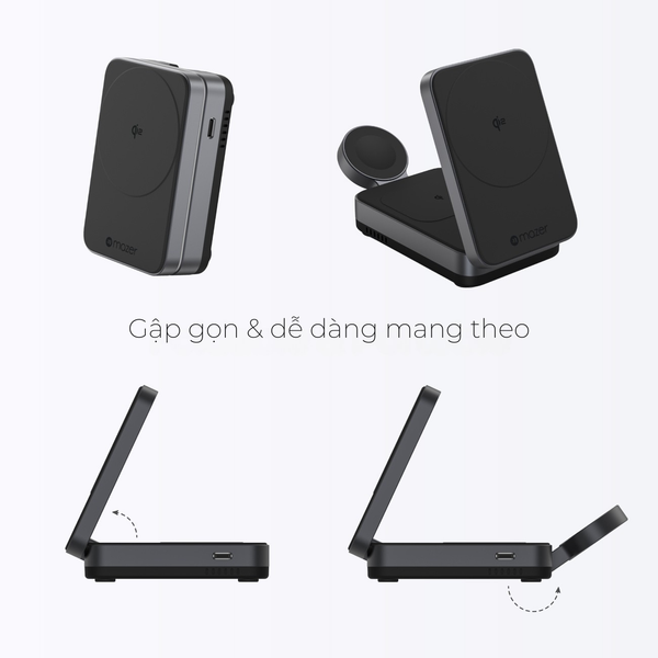 Khép lại danh sách là Mazer 3 in1 Foldable Travel Charging Stand dành cho người dùng Apple cần công suất mạnh hơn, góc sử dụng linh hoạt và khả năng mang theo tối ưu.