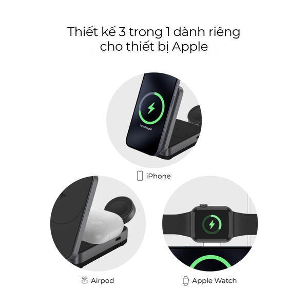 Với người dùng hệ sinh thái Apple, việc sở hữu đồng thời iPhone, Apple Watch và AirPods đã trở nên vô cùng quen thuộc. Thế nhưng, đi kèm sự tiện lợi ấy lại là nỗi bất tiện khi phải mang theo nhiều dây cáp, nhiều củ sạc, đặc biệt mỗi khi di chuyển hay sắp xếp góc làm việc.