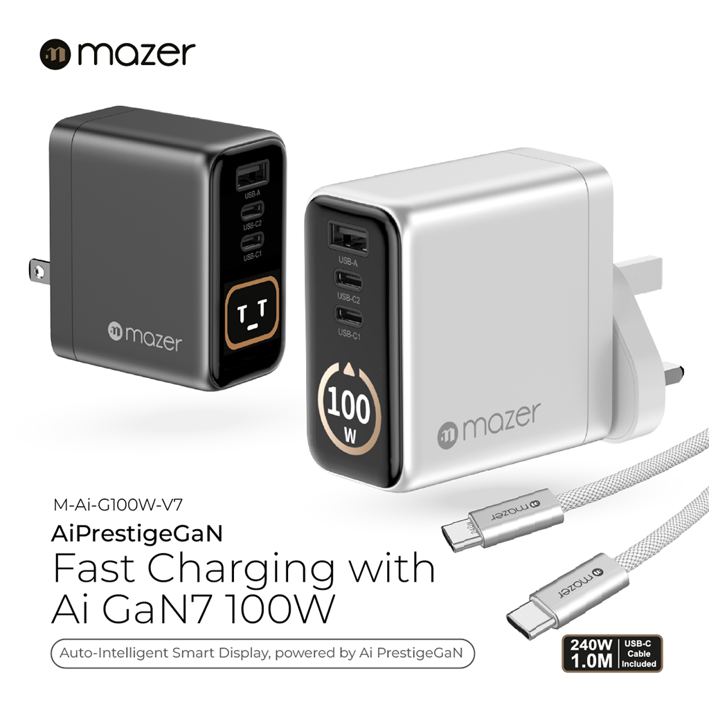 Bộ sạc kèm cáp PD100W MAZER Ai Prestige GaN