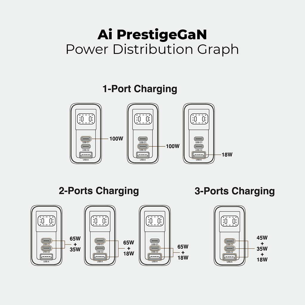 Trong thời đại công nghệ, nhu cầu sạc nhanh, tiện lợi và an toàn ngày càng trở nên quan trọng. Bộ sạc GaN 3 cổng – PD 100W với màn hình hiển thị thông minh là lựa chọn hoàn hảo cho những ai thường xuyên sử dụng nhiều thiết bị cùng lúc, từ laptop, MacBook, iPad, smartphone cho đến tai nghe.