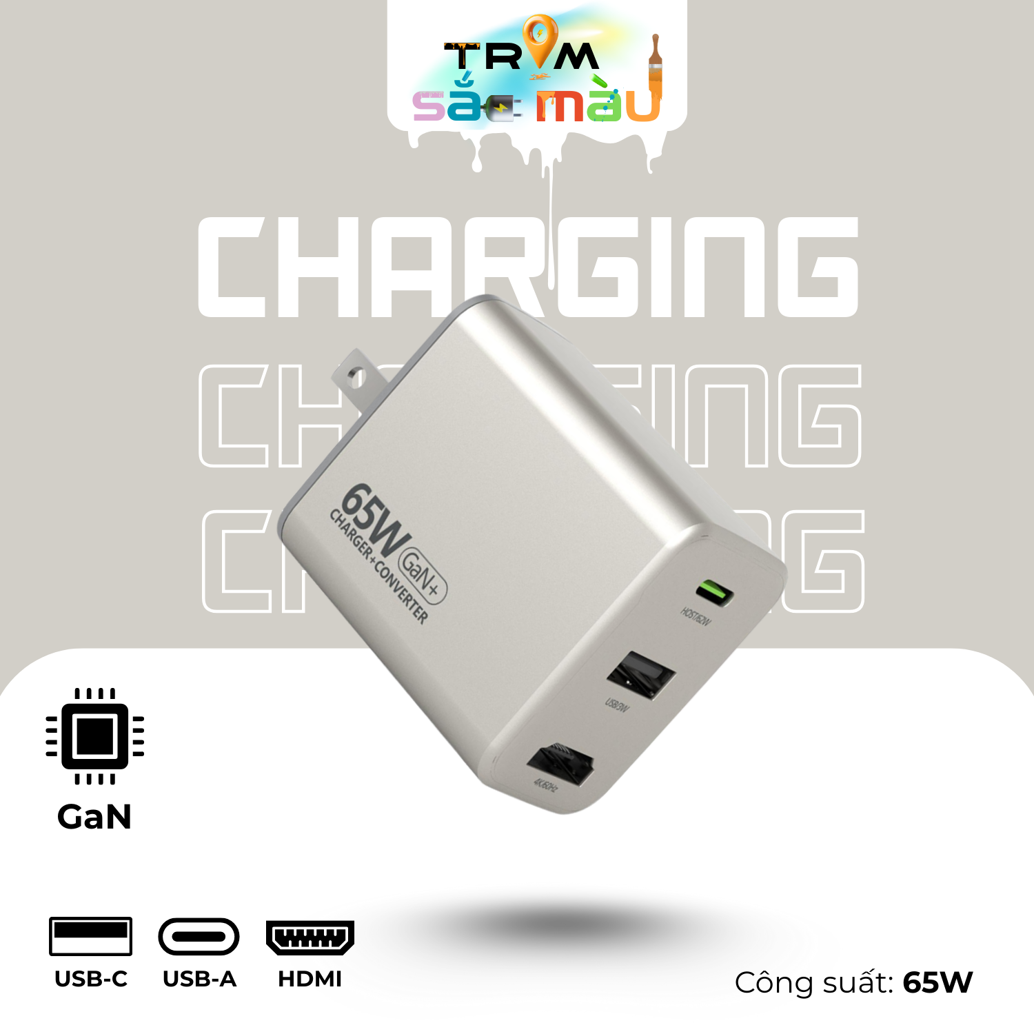 Sạc nhanh 65W: Cổng USB-A và USB-C tương thích với mọi loại cáp và thiết bị của bạn, tận hưởng khả năng sạc nhanh và hiệu quả với công suất tối đa 65W.
