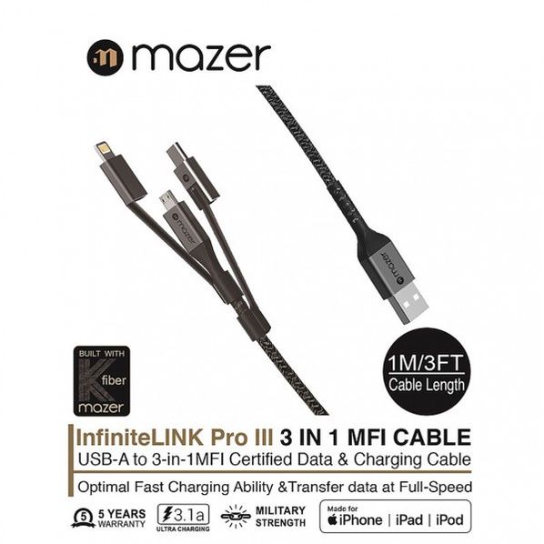 - Dây Cáp Mazer Power Link II 3 in 1 USB Fast Charging (1M)