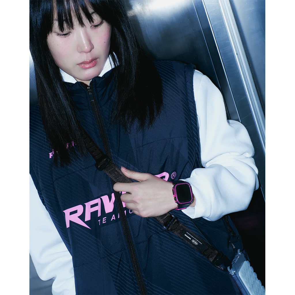 GEMINI được chế tác từ silicone, mang lại độ đàn hồi, chống thấm nước và kháng mồ hôi tối ưu. Thiết kế hai tông màu tương phản đậm chất street tạo điểm nhấn nổi bật, trong khi khóa nam châm ẩn được tinh chỉnh ôm sát cổ tay, giúp thao tác nhanh và đeo chắc chắn. Các chi tiết kim loại bằng thép không gỉ được hoàn thiện tinh xảo, đảm bảo độ bền và giữ vẻ sáng sang trọng theo thời gian.