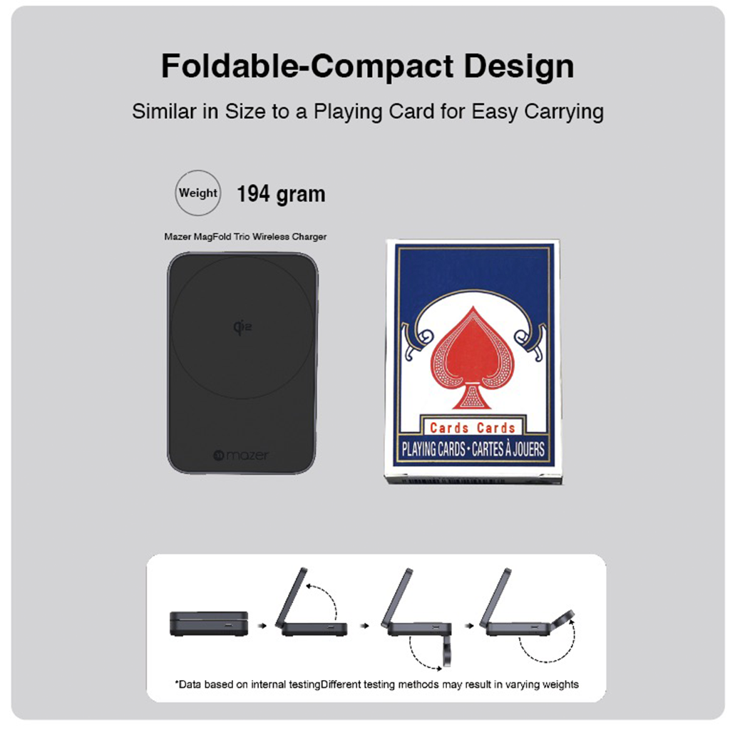 Thiết kế có thể gập lại siêu nhỏ gọn: Di động, nhẹ và dễ dàng mang theo bên mình, chỉ nặng 198 gram và có thể gấp lại thành kích thước tương đương với một bộ bài.