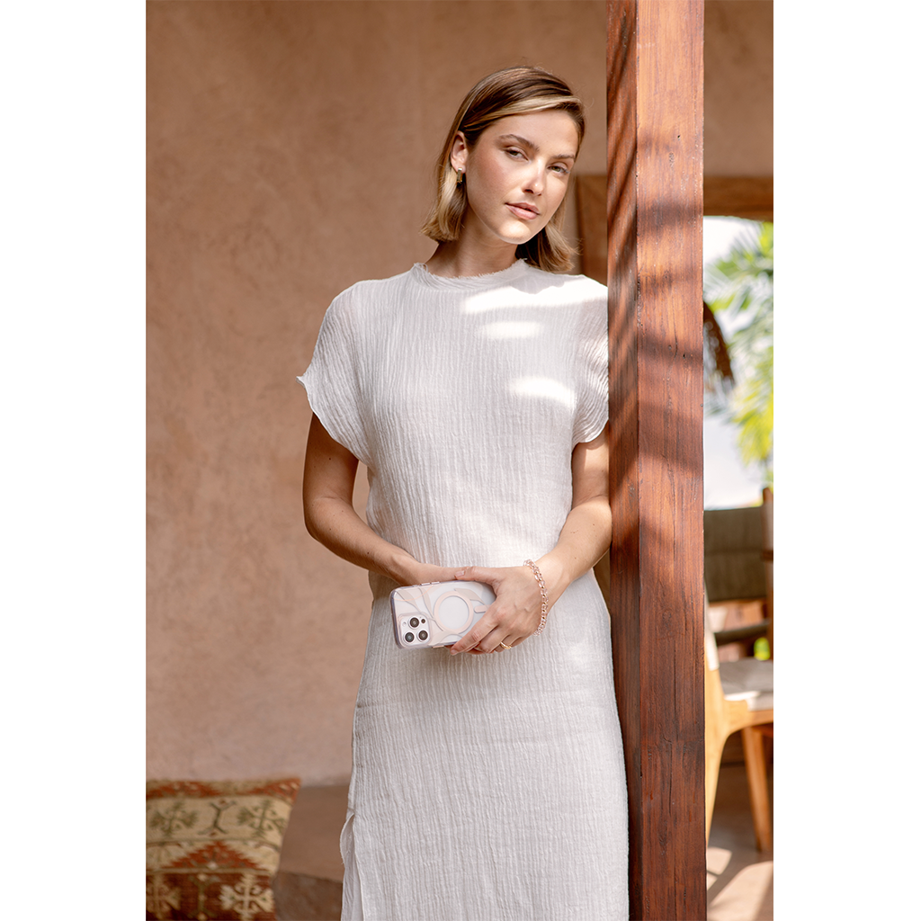 - Lấy cảm hứng từ sự thanh lịch của thiên nhiên và được trang trí bằng những tán lá được sắp xếp tinh tế trên nền màu sắc nhẹ nhàng, trầm lắng, Verdure có một lớp đệm mềm bao quanh điện thoại của bạn để vừa vặn chính xác và bao gồm các nút kim loại xúc giác.- Được chế tạo để chịu được tác động từ những cú rơi từ độ cao lên đến 2,5m/8 feet với viền ống kính máy ảnh được nâng lên và lớp bảo vệ chống trầy xước bên ngoài.