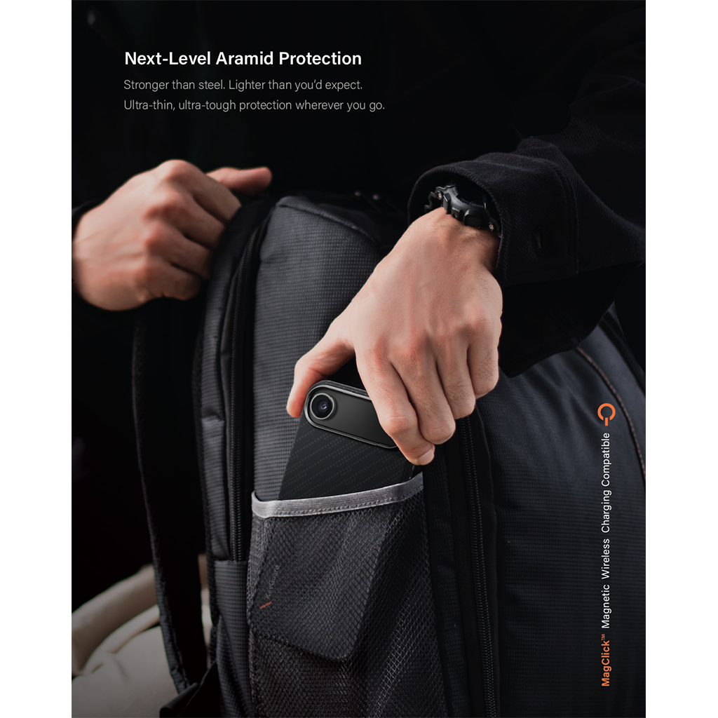 - Được chế tác từ sợi Kevlar nguyên khối, nổi tiếng với độ bền siêu việt và trọng lượng siêu nhẹ – mang đến một trong những giải pháp bảo vệ mỏng và cứng cáp nhất hiện nay.- Thiết kế siêu mỏng ôm sát thân máy, vừa vặn hoàn hảo, bảo vệ toàn diện mà không tạo cảm giác cồng kềnh.