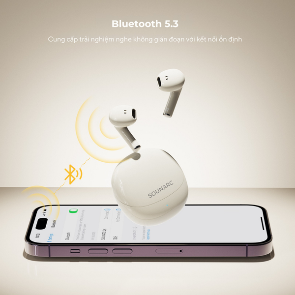 Công nghệ Bluetooth 5.3 giúc tai nghe Sounarc Q3 duy trì kế tức độ trễn kết cao trong quá trình truyền âm thanh. Việc ghép nối với smartphone hoàn toàn nhanh chóng, không cần thao tác phức tạp. Kể cả khi bạn đi bộ, tập gym hay đi xe, âm thanh vẫn giàu chi tiết và không bị đứt quãng.