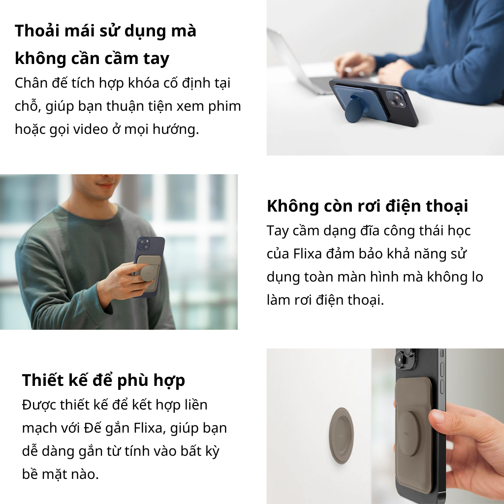 UNIQ Flixa là phụ kiện đa năng kết hợp giữa ví đựng thẻ từ tính và chân chống pop-out, mang đến sự tiện lợi tối đa cho người dùng. Với thiết kế mỏng nhẹ và tích hợp nam châm mạnh mẽ, Flixa dễ dàng gắn chặt vào mặt lưng điện thoại, cho phép bạn mang theo những thẻ quan trọng nhất mọi lúc mọi nơi.
